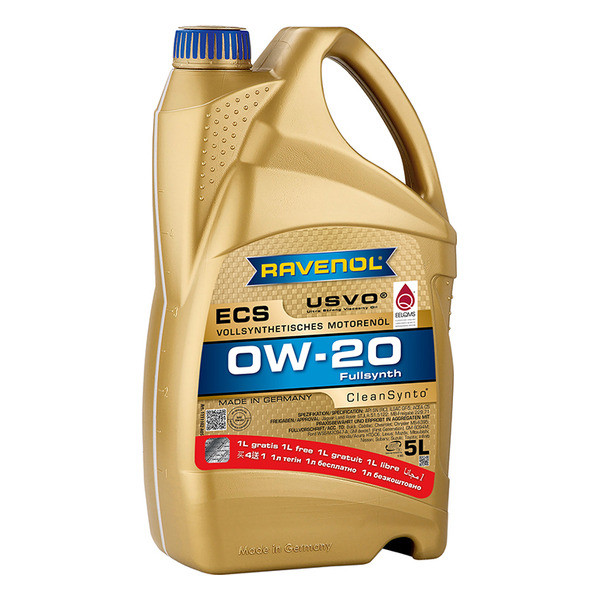 RAVENOL ECS 0W-20 – to'liq sintetik, oson oqadigan motor moyi bo‘lib, CleanSynto® va USVO® texnologiyalari asosida ishlab chiqarilgan. Benzin va dizel dvigatellari uchun, shu jumladan turboquvvatlangan va to‘g‘ridan-to‘g‘ri yoqilg‘i purkash tizimiga ega dvigatellar uchun mo‘ljallangan.