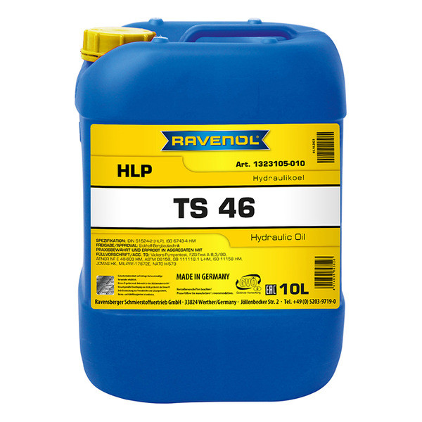 RAVENOL Hydraulikoel TS 46 (HLP) gidravlik moyi qurilish va kon texnikasi gidravlik tizimlarida, yuqori bosimli nasoslarda, shuningdek kichik mexanizmlarga xizmat ko‘rsatishda va yopiq tizimlarda ishchi suyuqlik sifatida universal qo‘llaniladi.