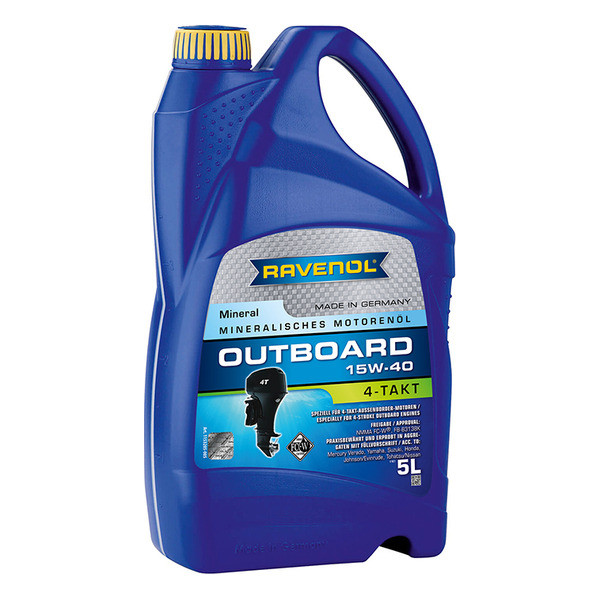 RAVENOL Outboardoel 4T SAE 15W-40 – mineral motor moyi bo‘lib, NMMA FC-W talablari asosida in’yeksiya tizimiga ega 4 taktili tashqi qayiq dvigatellari uchun maxsus ishlab chiqilgan. Yuqori aylanish tezligi va yuklama sharoitida ham mukammal moylashni, kam kulli qo‘shimchalar orqali ishqalanishga qarshi himoyani hamda korroziyadan himoyani ta’minlaydi. Ko‘k rangga bo‘yalgan.