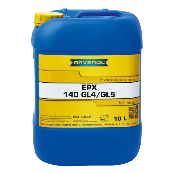 RAVENOL Getriebeoel EPX SAE 140 GL4/GL-5 is designed for use in highly loaded, hypoid gears for hypoid gearbox, as well as for axle, transfer case, transmission gear, auxiliary gearboxes in vehicles and machinery and for use as an extreme pressure gear oil where this grade of lubricant is specified by the manufacturer.